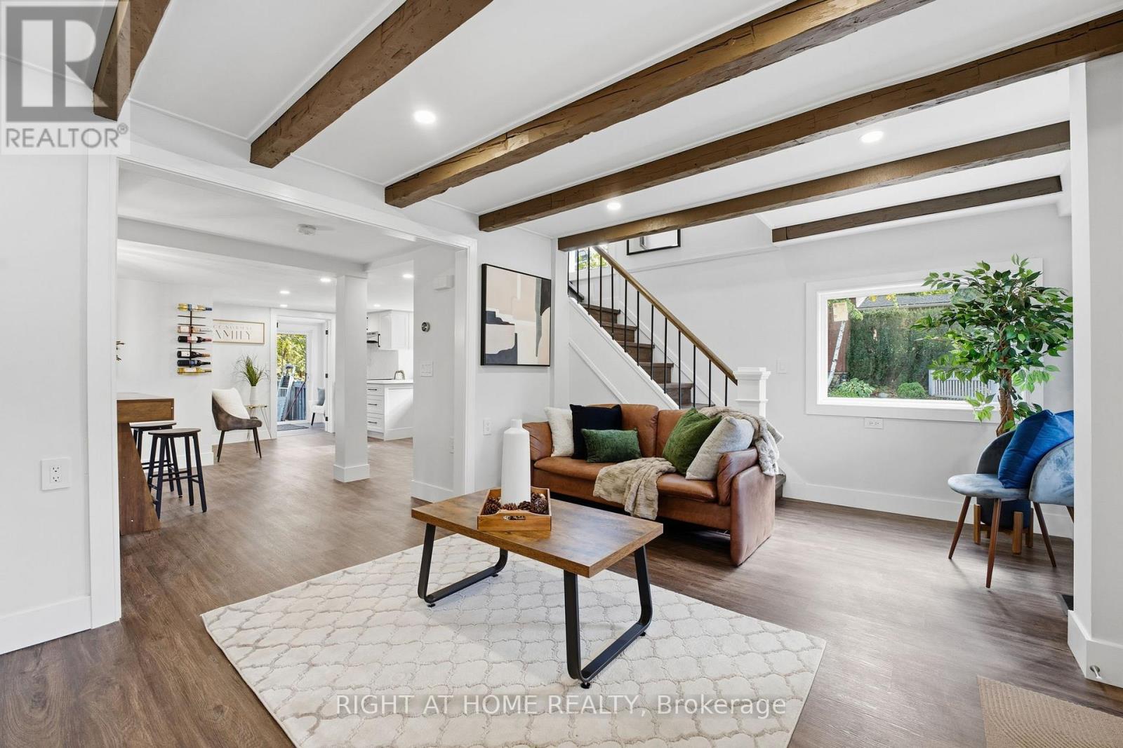 Welcome to 4255 William Street. Discover this fully renovated 3-bedroom, 2.5-bathroom gem in a quiet, family-friendly Beamsville neighborhood. This home blends rustic charm with modern luxury, featuring an open-concept living area with original wood beams, a custom accent wall with electric fireplace and thoughtful storage. Enjoy a brand-new kitchen, beautifully renovated bathrooms, and a cozy attic loft bedroom with a vented skylight. Situated on a corner lot, the property offers a huge backyard, large deck, second-storey balcony, new windows, large laundry/mudroom and parking for up to six cars. Move-in ready and absolutely stunning! (id:52812)