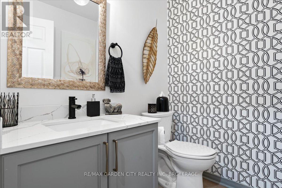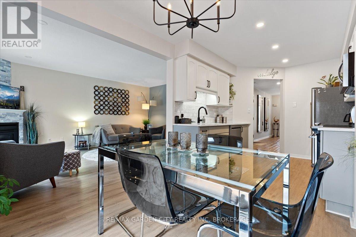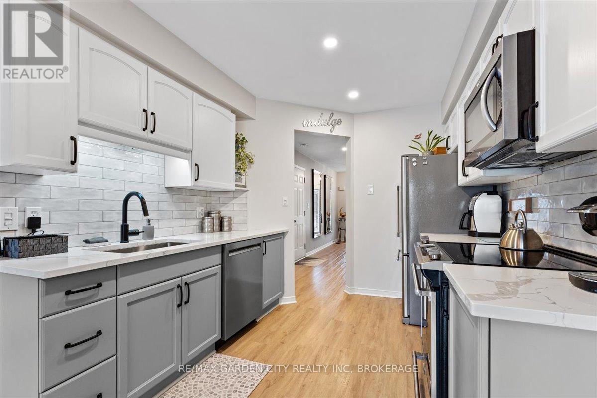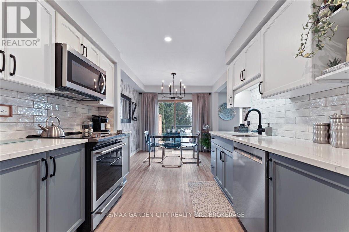 Looking for the Home that makes your heart skip a beat? 166 Lawrence is opening doors to a new beginning. Stunning Freehold Townhouse on a lovely cul-de-sac in Fabulous Fonthill. You will feel all the feels in your first few minutes as you enter the large foyer, the glorious update kitchen with quartz countertops, eat in kitchen overlooking the beautiful new private deck, backstairs to new patio area. Bright living room with stone gas fireplace. Upstairs level hosts a spectacular primary suite with large walk-in closet and updated ensuite, bedroom level laundry, 2 additional bedrooms, updated 4pc bathroom. The lower level continues to wow you with finished rec room, additional updated 3pc bathroom and walk-out to the private patio. Come Buy you'll love it! (id:52812)