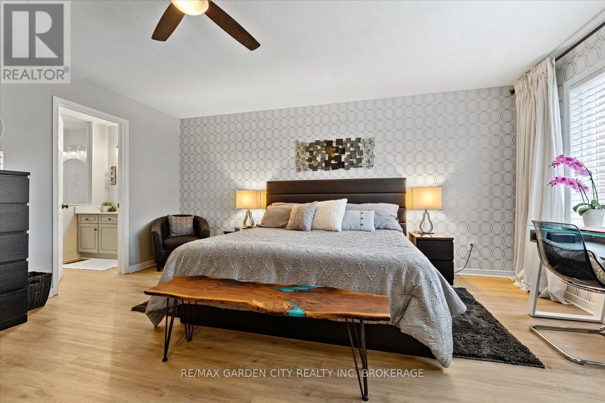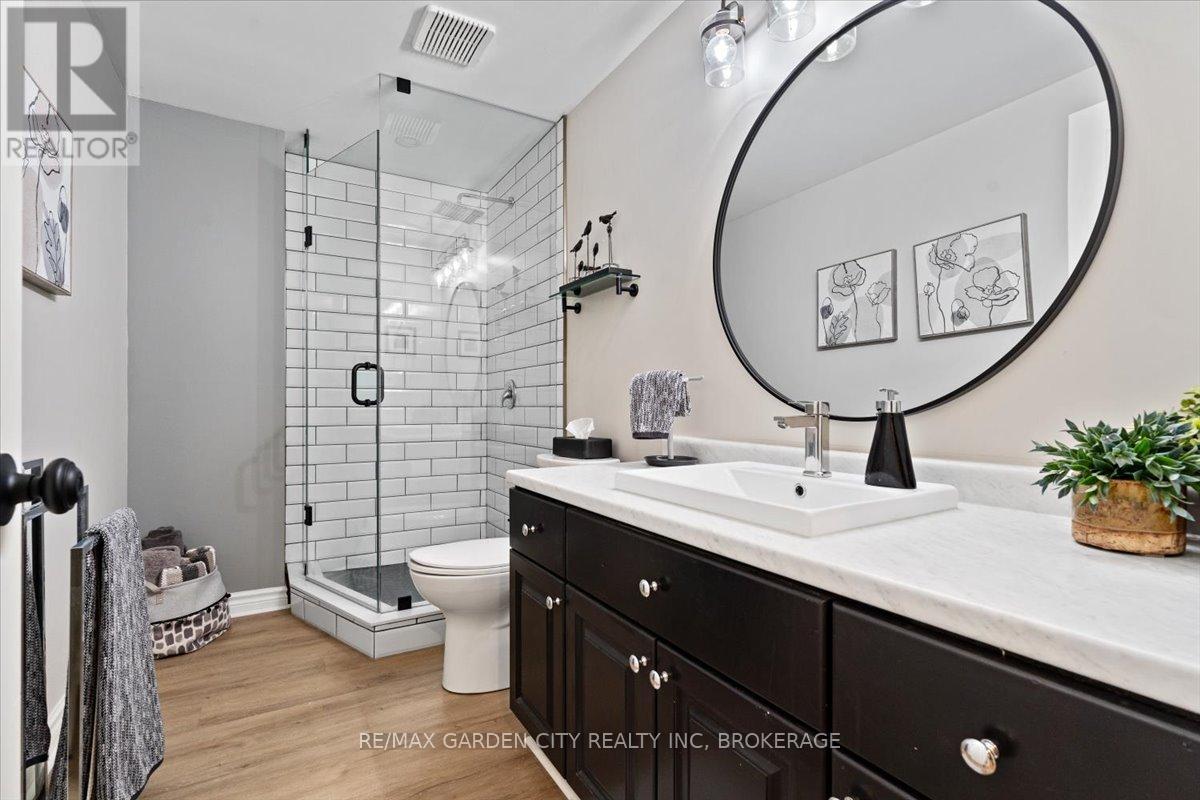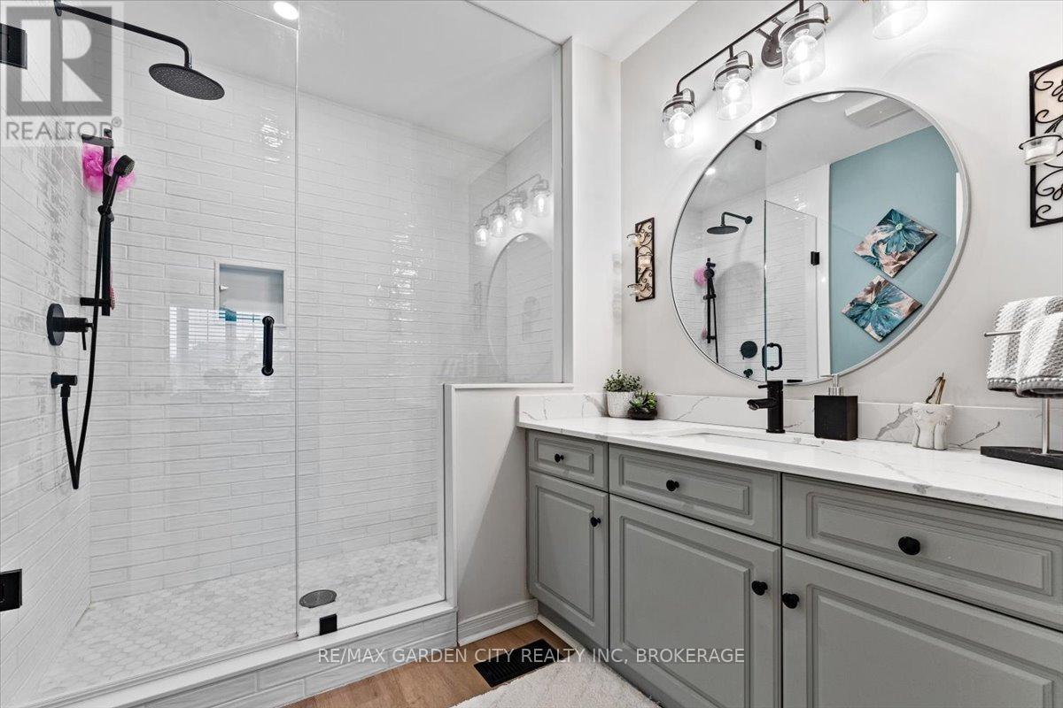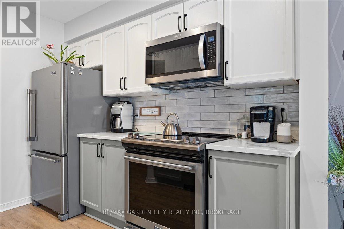 Looking for the Home that makes your heart skip a beat? 166 Lawrence is opening doors to a new beginning. Stunning Freehold Townhouse on a lovely cul-de-sac in Fabulous Fonthill. You will feel all the feels in your first few minutes as you enter the large foyer, the glorious update kitchen with quartz countertops, eat in kitchen overlooking the beautiful new private deck, backstairs to new patio area. Bright living room with stone gas fireplace. Upstairs level hosts a spectacular primary suite with large walk-in closet and updated ensuite, bedroom level laundry, 2 additional bedrooms, updated 4pc bathroom. The lower level continues to wow you with finished rec room, additional updated 3pc bathroom and walk-out to the private patio. Come Buy you'll love it! (id:52812)