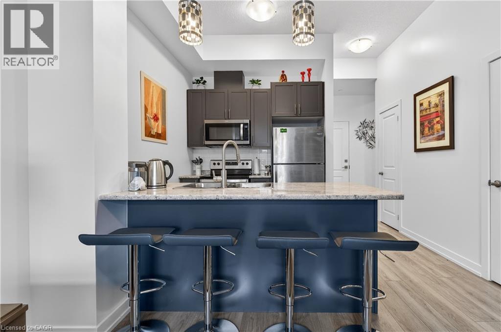 Welcome to the penthouse level at one of Beamsville’s most desirable buildings. This rare top-floor 1 Bedroom + Den condo offers complete privacy with no one above you, upgraded finishes throughout, and an oversized private balcony showcasing beautiful courtyard and escarpment views.Featuring 9 ft ceilings and a bright open-concept layout, the unit includes a spacious living room with direct balcony access, a modern kitchen with stainless steel appliances, a versatile den perfect for a home office, a generous bedroom, a 4-pc bathroom, and convenient in-suite laundry. Truly move-in-ready and designed for comfort. This unit includes 1 owned underground parking space and an owned locker, with condo fees covering common elements, insurance, geothermal heating & cooling, and more—keeping long-term costs low. Residents enjoy an impressive list of amenities: a stylish party room, full fitness center, dedicated bike storage, rooftop patio with panoramic views, and plenty of visitor parking. Located in the heart of wine country and steps to TD Bank, Sobeys, restaurants, parks, and award-winning vineyards. Just minutes to the future Beamsville GO Station and with quick access to the QEW, this is the perfect home for commuters, first-time buyers, downsizers, or investors seeking reliable rental potential. Penthouse living, unbeatable location, and a beautifully maintained building—your opportunity awaits. (id:52812)